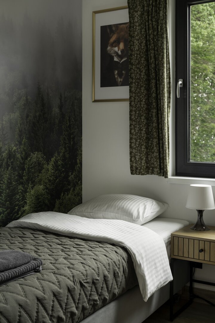 Naszym celem było stworzenie miejsca, które nie tylko zapewnia komfort, ale także pozwala poczuć bliskość z naturą. Każdy detal, od miękkich, naturalnych tkanin po kamienne dodatki, został starannie dobrany, aby oddać hołd pięknu górskiego krajobrazu i spokojowi leśnych ostępów.