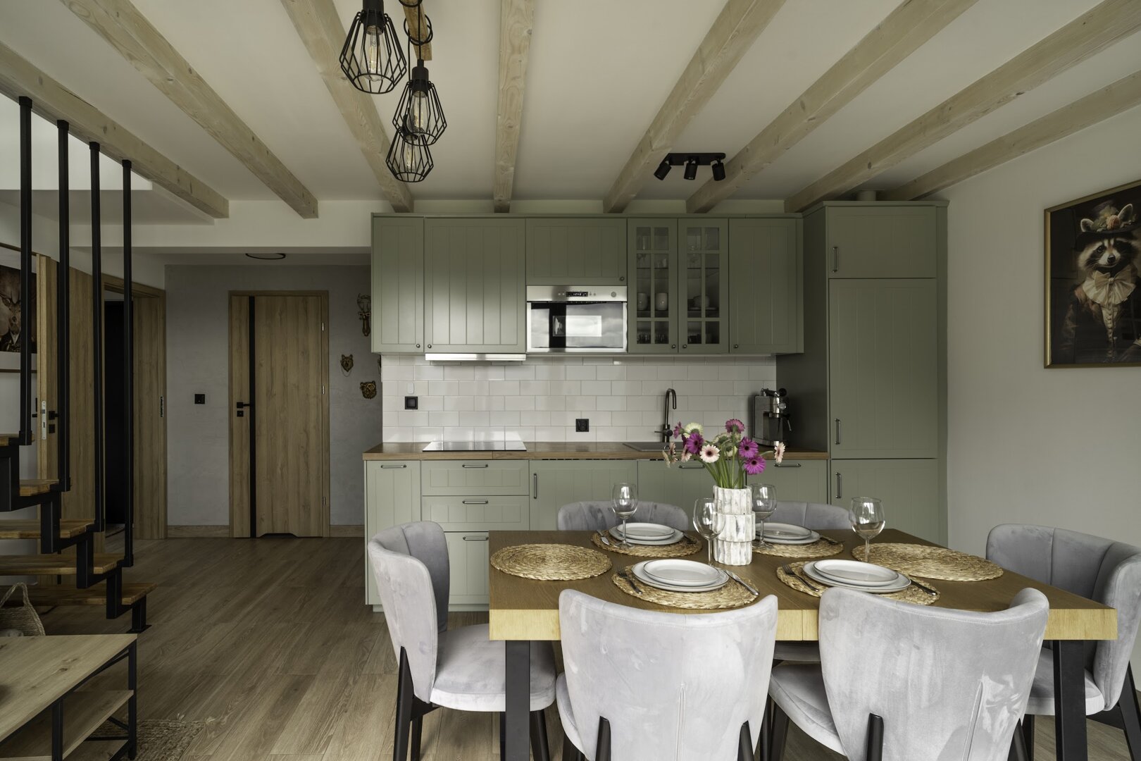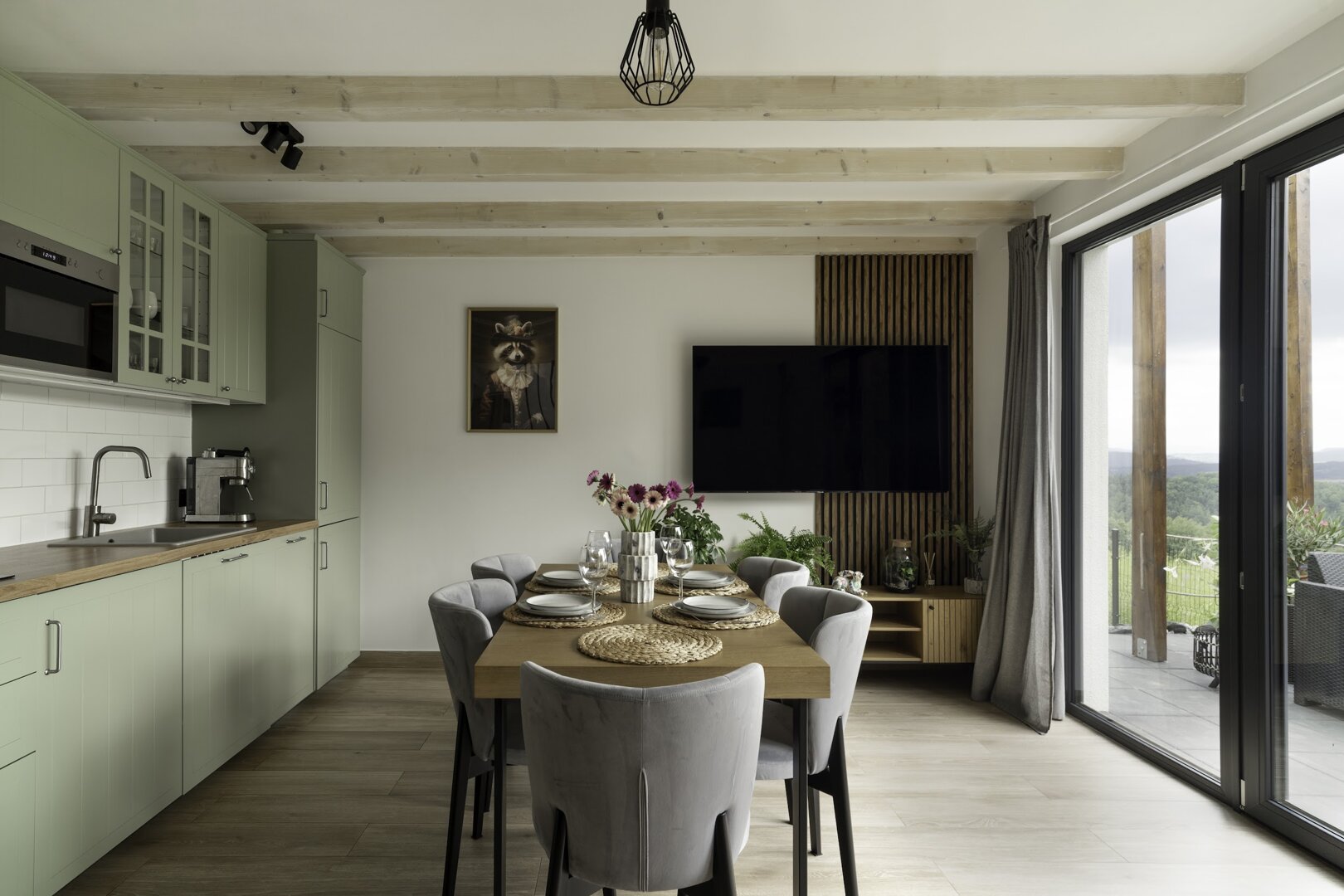Inspiracją do urządzenia wnętrza naszego domku była natura, las oraz jego mieszkańcy, a także majestatyczne góry i surowe skały, które otaczają to malownicze miejsce. Każdy element wystroju odzwierciedla piękno otaczającej przyrody i dąży do stworzenia harmonii między wnętrzem a zewnętrzem.